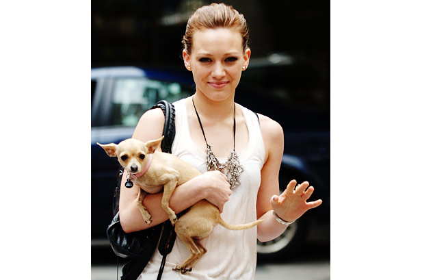 Хилари Дъф и нейната чихуахуа, която претърпя операция на мозъка през 2012