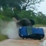 Животното с наслаждение мачка коли, като последната му проява бе запечатана на видео. Арена на слонския екшън е националният парк Као Яй в Накхон Ратчасима.
